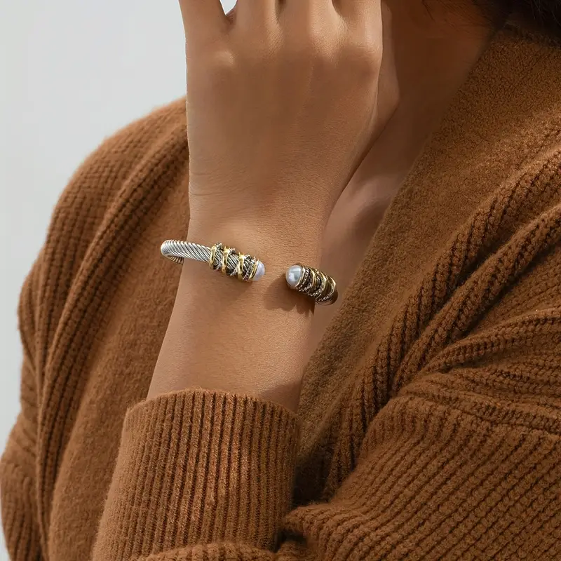 Pearls: Elegant synthetic pearls, perfectly shaped to complement the cuff design.
